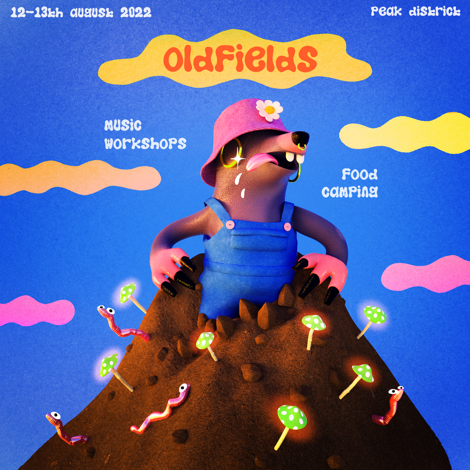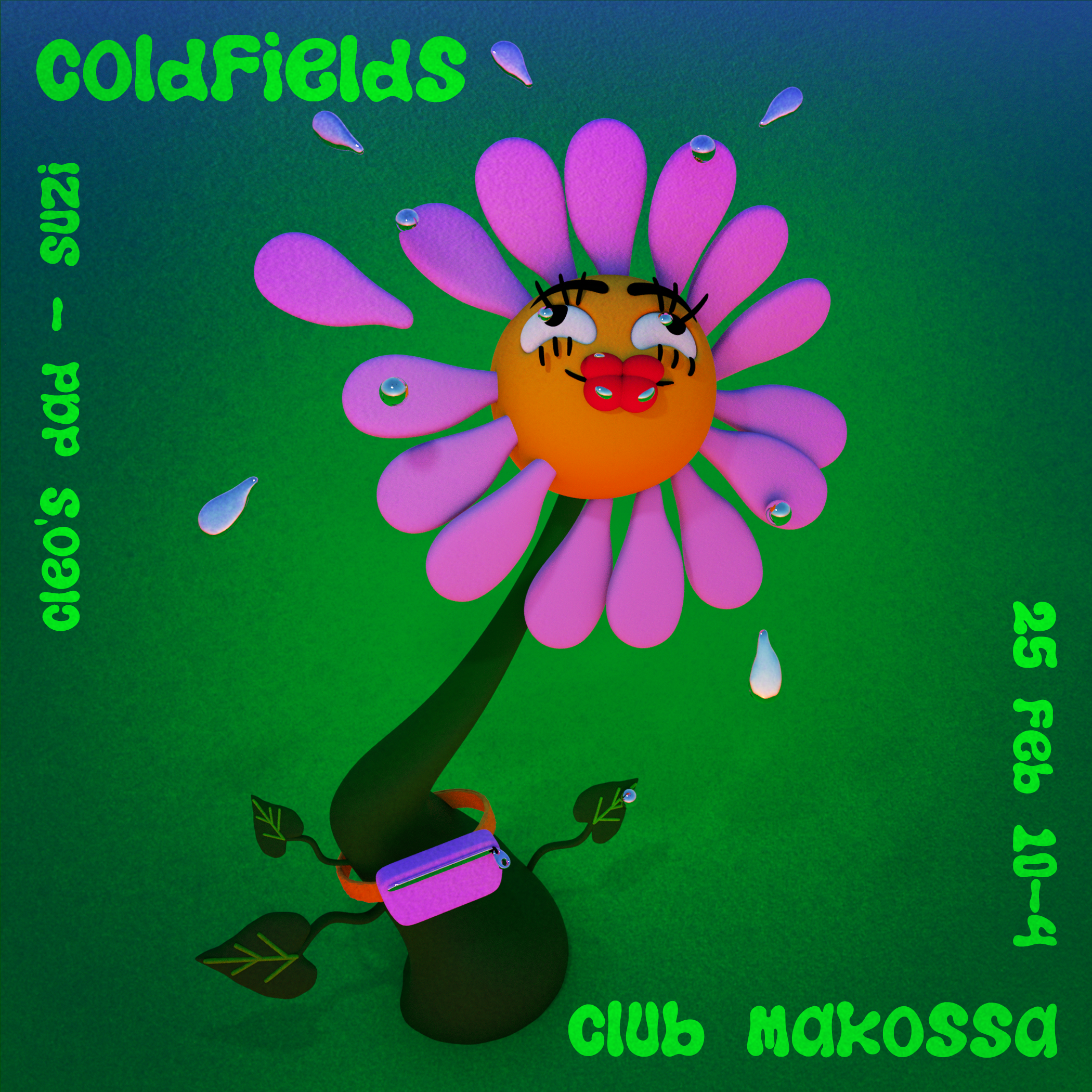 Poster designs for Coldfields and Oldfields- a new festival and club night of music and workshops. Made and animated in C4D with 2d elements. (2022)
